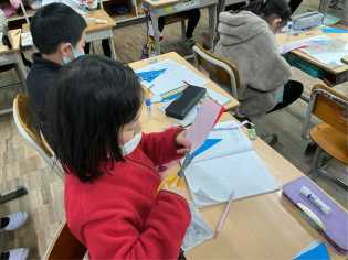 特別の教科 道徳の学習では、「すてきなものを見つけたときはどんなきもちかな」をめあてに学習しました。一人一人の見つけたすてきなものを尋ねると、「おうちのひとによんでもらった絵本」と答える子もいて、「すてきなもの」が意外と身近にあるんだとハッとさせられました。ご家庭でも「すてきなもの見つけ」をぜひやってみてください♪ |