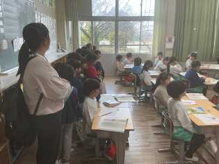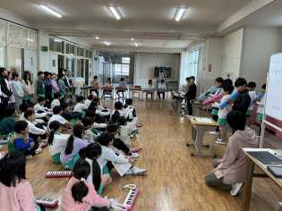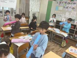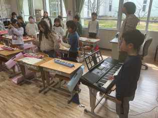 音楽科の学習では、「みんなで気持ちを合わせて歌おう」というめあてで、「こぐまの2月」「はるがきた」などを歌ったり、演奏したりしました。電子ピアノや、木琴、鍵盤ハーモニカも使って、みんなで気持ちを合わせて、楽しく演奏していました。 |