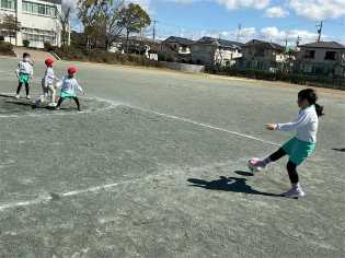 風の強い日になりましたが、体育科の学習では、元気にボールあそびをしました。