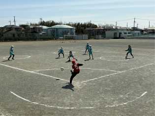 ねらった通りに蹴ることができない子もいましたが、みんなで仲良く楽しみました。 |