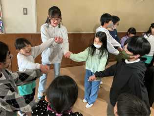 2月初めから、全校で楽しむ活動に取り組みたいと考えた6年生が、企画しました。はじめの企画の段階では、どんなことを、どんなふうにするのか…、安全上…、全員で取り組むには…、全児童で楽しむには…、時間は…、役割分担は…、などなど、6年担任や教頭、校長からたくさんの意見を受け、何度も持ち帰って、また6年生で話し合い、アイデアを出し合い、本日の実施へと進めてきました。