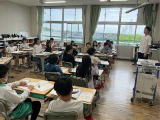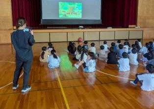 安全に登下校するための安全教室を行いました。1年生にとっては初めての出前授業となりました。自分の命を自分で守ることのできるみどりっ子に成長していくことと思います。 |