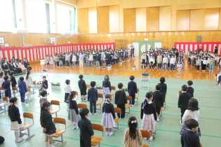 入学式・始業式では、入学認定と進級認定を校長先生にしていただきました。新1年生のかわいらしい返事と2から6年生のりっぱな小学生らしい返事が対照的で成長を再確認しました。