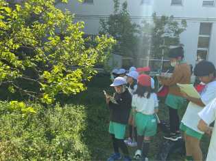 理科の学習では、屋外に出て自然の観察を行いました。一生懸命に植物や生き物を探し、写真に収めてりました。