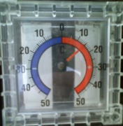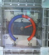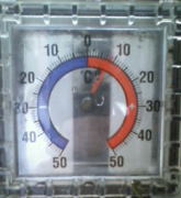 山頂は、−2℃ ぞんぎゃあぬくとい 温度計さんにも雪帽子きさる
