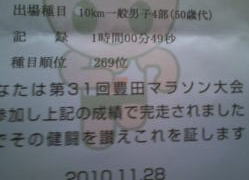 2010/11/28 (日) 第31回豊田マラソン大会:豊田市運動公園陸上競技場を発着点とする一部折返し10(未公認)
