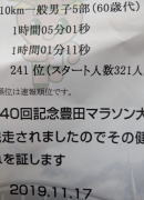 2019年11月17日 日曜日 第40回記念豊田マラソン大会 10Km 65分01秒as