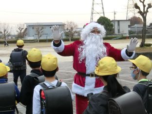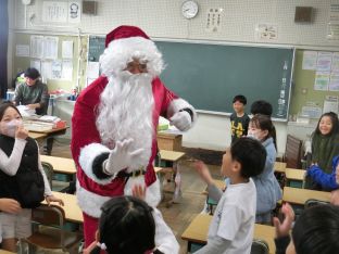 | 12月1日(月) サンタがやってきた! ちょっと早いけど、南部小学校にサンタがやってきました。このサンタは英語を話します。サンタと一緒に楽しく英語の学習をしました。 |