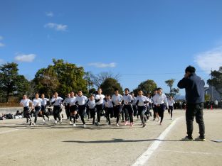 | 12月12日(金) マラソン大会 澄みわたる青空の下、子どもたちは一生懸命走りきりました。自分の目標に向かって。沿道からの見守りや温かいご声援をありがとうございました。 |
