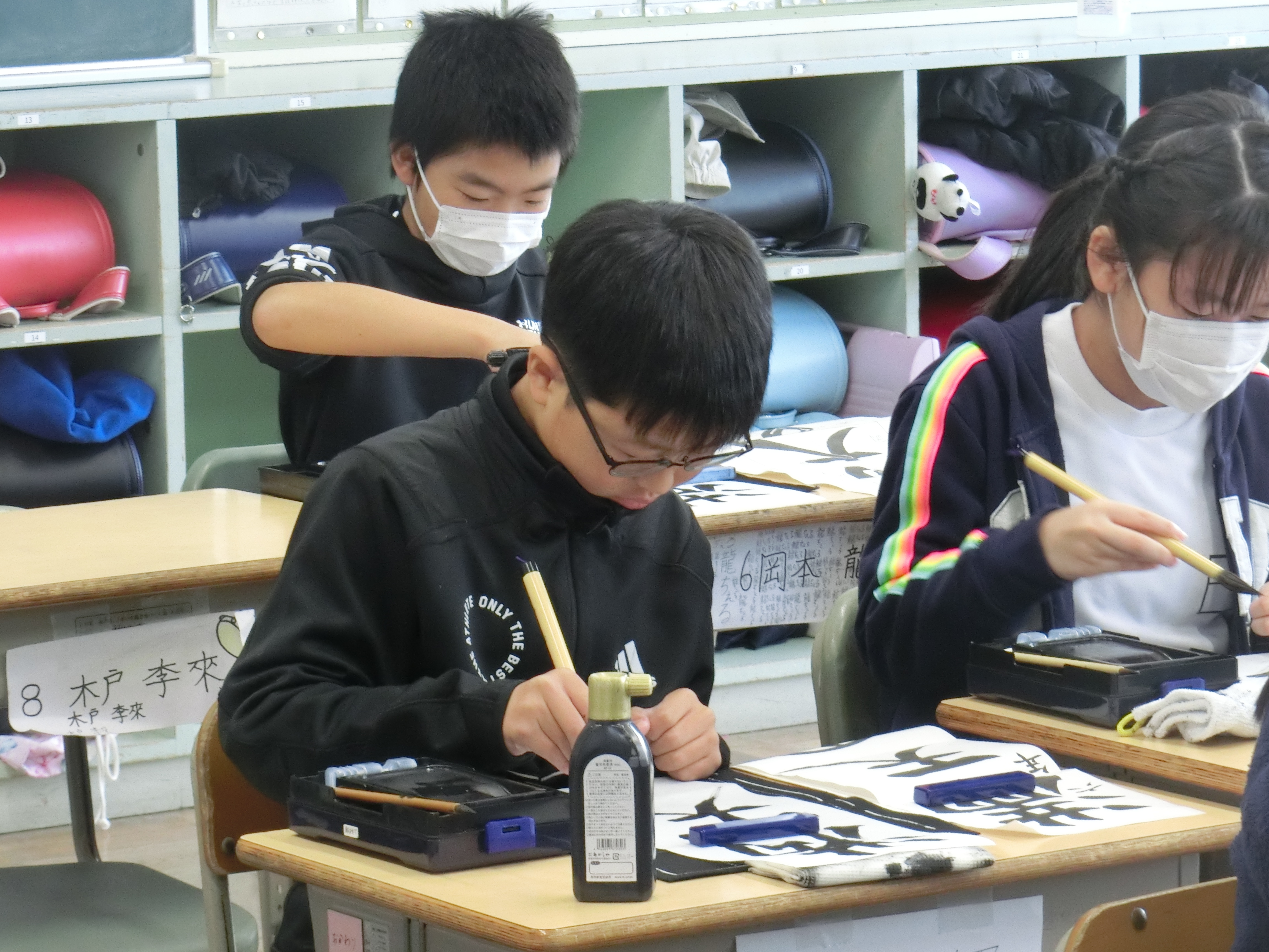 | 1月8日(木) 書き初め大会 2・3時間目に書き初め大会を行いました。静寂の中、黙々と筆や鉛筆を走らせる子どもたちの姿がありました。書き初め展は1月27日からの3日間の予定です。 |