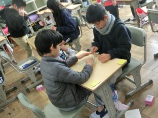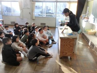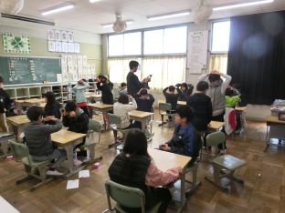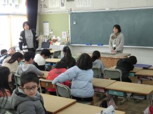 | 1月9日(金) 外部講師といっしょに 5年生がモノづくり魂浸透事業で、4年生は防災出前講座で外部講師と一緒に学習をしました。 この日は、余震が繰り返されることを想定した避難訓練も行いました。 |