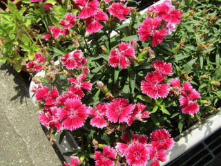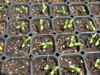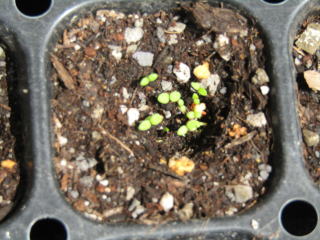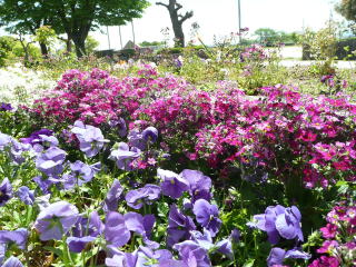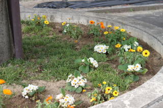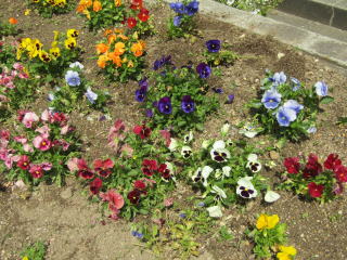 | 学校の花壇には、2月から絶え間なく花を咲かせてくれた色とりどりのパンジーが、今なおきれいな花を楽しませてくれています。 そして、植え替え用に蒔いた新たな種。マリーゴールドとペチュニアの種からかわいい芽がようやく出てきました。5月の日差しに鮮やかな緑がよく映えて見えます。 |