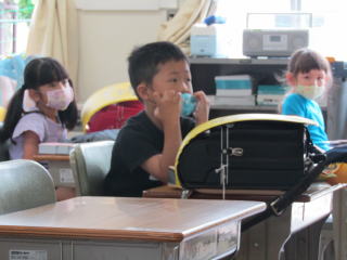 | 全員の子どもたちが学校に揃いました。久しぶりに会う友達に思わずはしゃぐ子どもたち。しかし、お互いの距離を十分に保つなど「新しい生活」を意識した学校生活が本格的にスタートした一日にもなりました。 | ![]() |