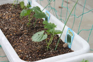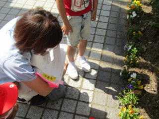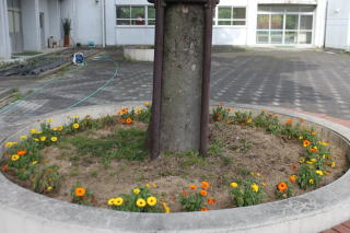 | 普段、1年生のみんながよく遊ぶ中庭にきれいなお花がたくさん植えられています。お花たちも、一日でも早くみんなに会えるのを心待ちにしています。 また、昨日、市役所の環境課より届けていただいたゴーヤの苗を職員室の南側に置いたプランターに植え替えました。今はまだ小さな苗ですが、きっと夏までには職員室の窓一面に広がり、緑のカーテンになってくれることでしょう。 |
