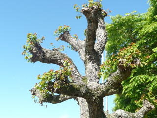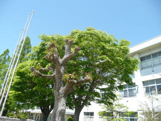| 春を彩った「ツツジ」の花がそろそろ終わりの時期になってきました。5月になり、いよいよ「サツキ」の出番となりました。サツキの花は、ツツジより小さいのですがたくさんのつぼみが順番を待っています。 昨年、ちょうどマラソン練習のときに枝をはっらた「ナンキンハゼ」が、新しい葉を見せ始めました。夏には、元気に枝を伸ばして日陰を作ってくれるでしょう。 |
