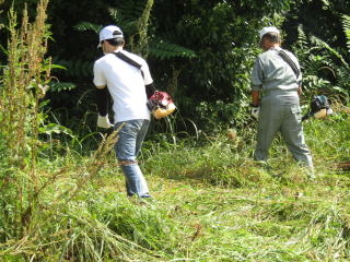 | PTA環境部の皆さんが、8時50分に学校に集まり、学校東側の広大な駐車場の草刈りをしてくださりました。 真夏のような強い日差しが照り付ける中、マスクを着用し、約1時間の作業。雑草が生い茂った駐車場が見事に開けました。環境部の皆さんに感謝の思いでいっぱいです。 |