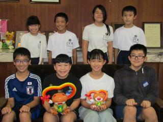 | 令和2年度前期児童会役員となった8名の子どもたち。校長室において、一人ずつ校長先生より任命状が手渡されました。 南部小学校をリードしていくという決意をもった子どもたちの表情には、自信とやる気が満ちあふれていました。 |
