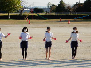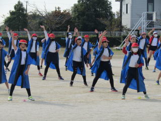 | 今日は、1・2年生の子どもたちが運動場で運動会の練習です。元気いっぱいに全身を動かしてダンスする目はキラキラ輝いています。さて、本番はどんな姿を見せてくれるのでしょうか。 | ![]() |