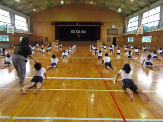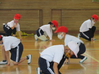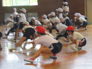 | いよいよ運動会まで残り2週間となりました。低学年部は増田先生が、中学年部は小川先生が中心となって、具体的な動きの指導を進めています。子どもたちは、真剣な表情で話を聞き、体いっぱいを使って動きを覚えようとしています。 | ![]() |