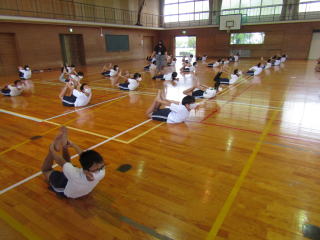 | 今月末に予定されている運動会へ向けての練習が本格的にスタートしました。 6年生は組体操(1人技のみ)の練習です。安全に配慮し、無理のないように進めています。 最高学年として、運動会での気持ちのいい演技を期待しています。 |