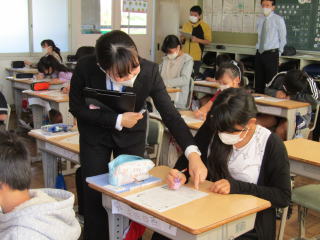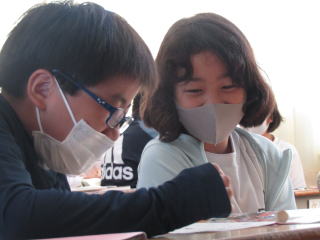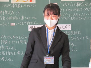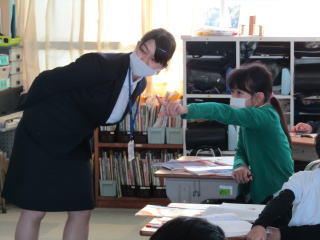 | 二人の教育実習の先生が、それぞれ算数科・道徳科の授業を行いました。 子どもの声を丁寧に受け止め、常に落ち着いて授業を進める姿が輝いていました。実習期間も残り少なくなってきました。子どもとともに過ごす時間を大切にして、充実した実習になることを願っています。 |