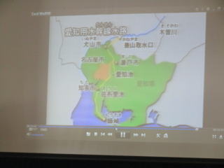| 3・4時間目、4年生を対象に愛知用水出前授業が行われました。講師に「水土里ネット」の方々をお招きし、愛知用水の歴史や役割についてお話いただきました。 木曽川から取り入れた水が愛知用水によって、知多半島の先端である師崎、そして、海底に設置されたパイプを通って日間賀島や篠島にまで届いているという話に子どもたちは驚いていました。 |
