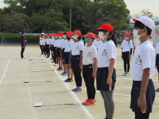 | 10月に入り、めっきり秋らしくなりました。真っ青な空の下、運動会へ向けて、まずは4年生が走り出しました。 今日は50m走の計測です。 入念な準備運動とストレッチ。そして、ジョギング、ランニングと少しずつスピードを上げていきます。 そして、いざ50m走を全力で。ゴール目指して真剣な表情で駆け抜ける姿がキラリと光ります。 |