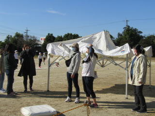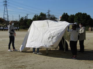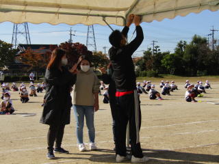 | いよいよ明日は運動会。 朝の9時よりPTAの役員の皆さんにお集まりいただき、運動会用の本部テントや器具テントの設置、長机やパイプいすの運搬をしていただきました。瞬く間に作業は終了。これで、明日の本番を安心して迎えられます。本当にありがとうございます。 |