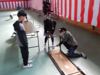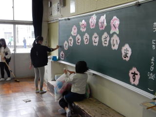 | 4月 7日(水) 6年生が活躍しています(入学式会場の片づけ) |