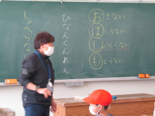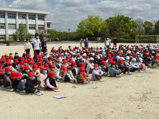新たな学級になって初めてとなる避難訓練。全校が「お・は・し・も」を徹底し、安全に速やかな避難を心がけて臨みました。どの学級の子どもたちも事前指導する先生の話を真剣に聞く姿が見られました。