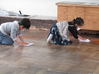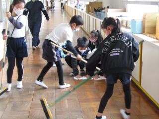 特に、床を雑巾がけする姿は素晴らしいものがあります。床に膝をついて、丁寧に雑巾がけをしながら後ろへ進んでいきます。いつも、きれいな校舎で過ごすことができるのはこういった取り組みの積み重ねだと実感します。 |