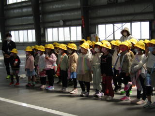1年生の子どもたちはトラック研修センターまでバスで移動し、交通安全教室に参加しました。