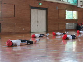 子どもたちも、先生も避難場所となった運動場へ整然と移動しました。避難後、教頭先生に報告する担任の先生の大きな声にその場の空気が張り詰めました。校長先生からは、「教室からの避難経路が確認できたこと・静かに移動できたこと」を子どもたちの姿から認め、どんな状況であってもこの経験を生かしてほしいというお話がありました。 |