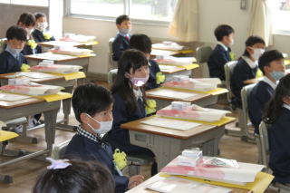 新2年生から6年生までの子どもたちについては、始業式を放送で行いました。校長先生から進級認定をしていただくと、どの教室からも勢いのある大きな返事が響いてきました。