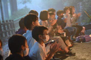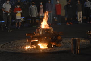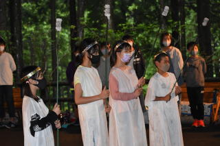 夜は、夕食後に予定通り「キャンプファイヤー」を行いました。火を囲んで、火の明るさ、におい、煙を肌で感じながら非日常を楽しみました。