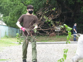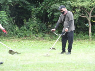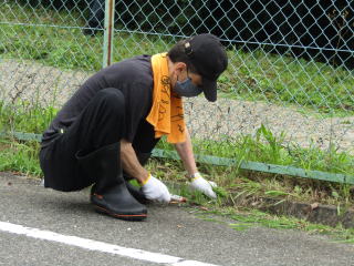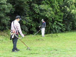 午前中は雨の予報が出ており、予定していた資源回収は中止となりました。その一方でトヨタ自動車明知工場のボランテイアの皆さんが本校の東側保護者用駐車場の環境整備のため、集まってくださりました。8時30分より草刈り活動をスタート。途中、降りしきる雨と汗で全身びっしょり濡れながら2時間も作業していただきました。