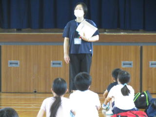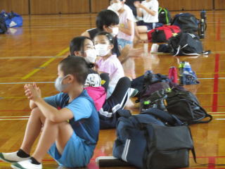 今日は、野外学習へ向けての諸注意と荷物の確認です。子どもたちは、学年の先生からのお話を背筋を伸ばし、真剣な眼差しで聞いています。