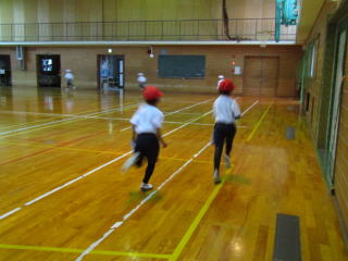 1年生の子どもたちは今日も走ります。本日は、あいにくの雨模様。体育館に集まった子どもたちは男女でペアをつくり、周回数を数えたり、拍手で応援したりしました。