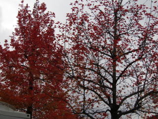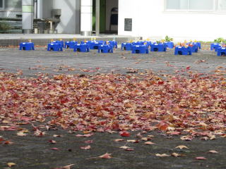 今週に入り、気温は下がり、一気に深まる秋。中庭の木も真っ赤に色づきました。1年生の子どもたちは木の葉の絨毯に大喜びです。