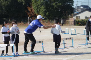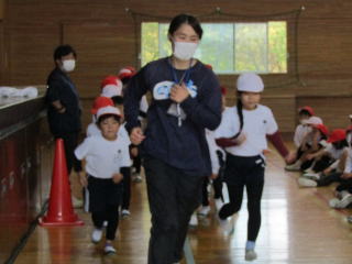 本年度は東海学園大学の学生さんが大会のお手伝いに駆けつけてくださり、子どもたちの先導役や伴走を担当していただきました。学生の皆さんは子どもたちへ励ましの言葉をかけながら走ってくださり、多くの子どもたちが普段以上の力走をすることにつながりました。