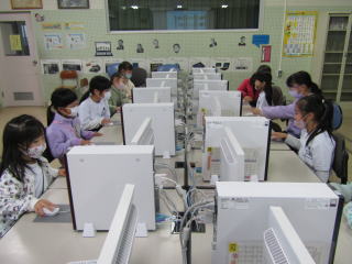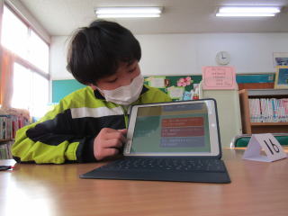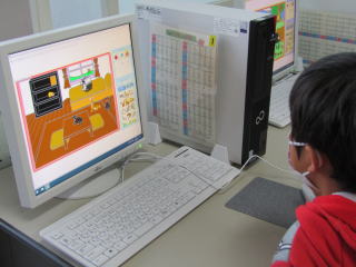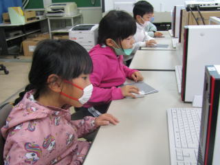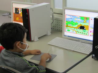 | 1年生の子どもたちが、オリジナルカレンダー作りにチャレンジです。初めてのコンピュータ室で大きなパソコンを前にした子どもたちはわくわくです。ICTサポーターからのアドバイスに耳を澄ませて聴きながら、マウスとキーボードを丁寧に動かす子どもたち。とてもカラフルでかわいい自分だけのカレンダーができました。 |