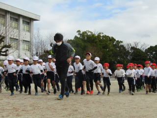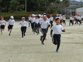 最後まで息を弾ませながら、運動場5周を駆け抜けました。大会では、子どもたちのこれまでの中で一番の走りが見られることを願っています。 |