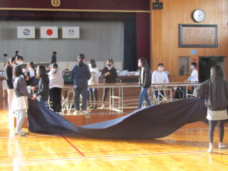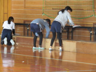 全校を代表して、6年生の子どもたちが役割分担し、テキパキと動きます。わずかな時間であっという間に片付けを完了しました。6年生の子どもたちの見事な動きは、気持ちいいものです。 |