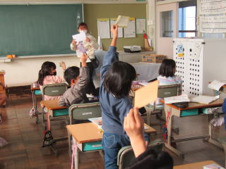 閉会式では、校長先生からのお話の後、全校児童が揃って東海学園の学生の皆さんとPTAの役員の皆さんへお礼の言葉を伝えました。 |