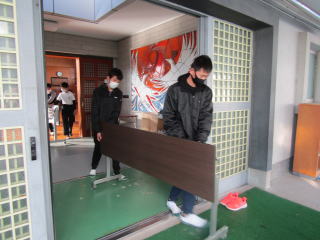 先週の金曜日まで開催された校内夢の作品展。今日は、会場を片付ける日です。