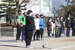 マラソン大会の日となりました。外は快晴で無風の絶好の大会日和となりました。各学年、男女別でスタートし、競技を進めました。