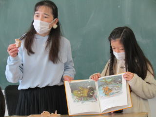 2年ぶりに「おはなし会みなみ」の時間が戻ってきました。朝の時間に読み聞かせボランテイアの方々が各学級の教室に入り、持ってきてくださった絵本を丁寧に読んでくださります。