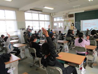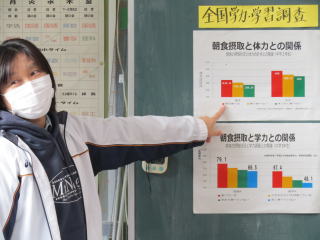 2・3時間目は6年生を対象にした食に関する指導が行われました。栄養士の先生を講師に招き、「朝ごはんを食べる良さについて考え、自分の生活を見つめよう」というテーマで授業をしていただきました。