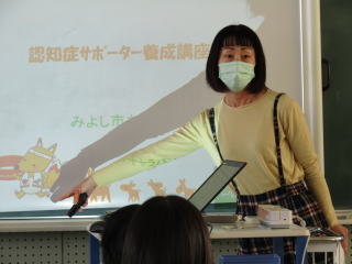 認知症とは何かについて説明された後、認知症の方への適切な対応の方法や認知症サポーターとしての役割について具体的な事例をもとに話していただきました。