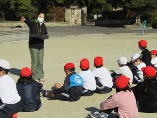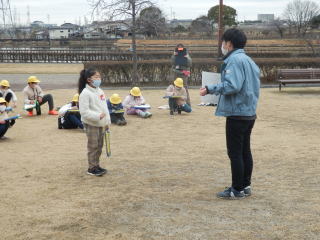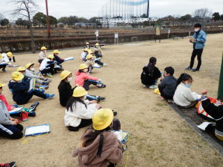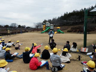 子どもたちは、細口公園に集まり、市役所公園緑地課の方よりお話を聞く機会がありました。 |